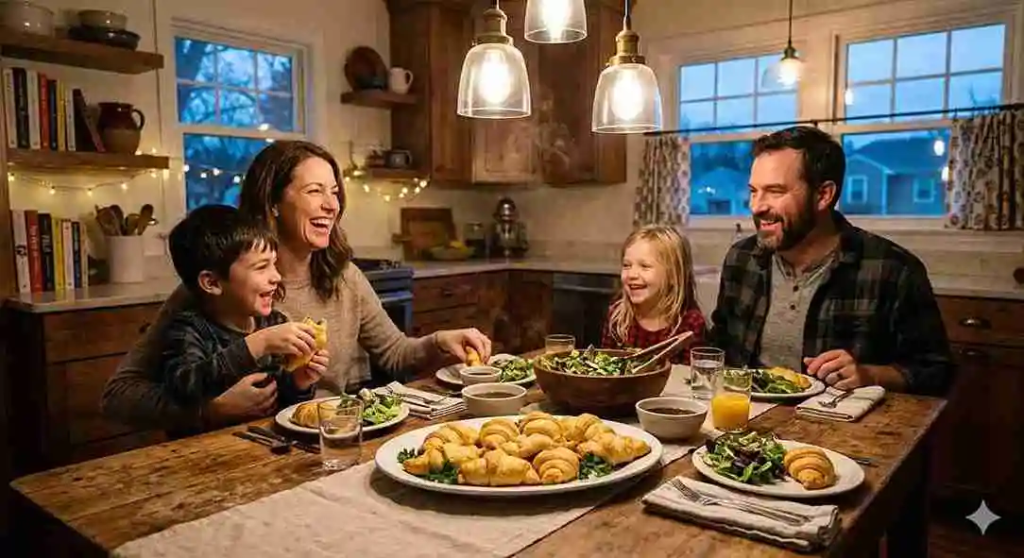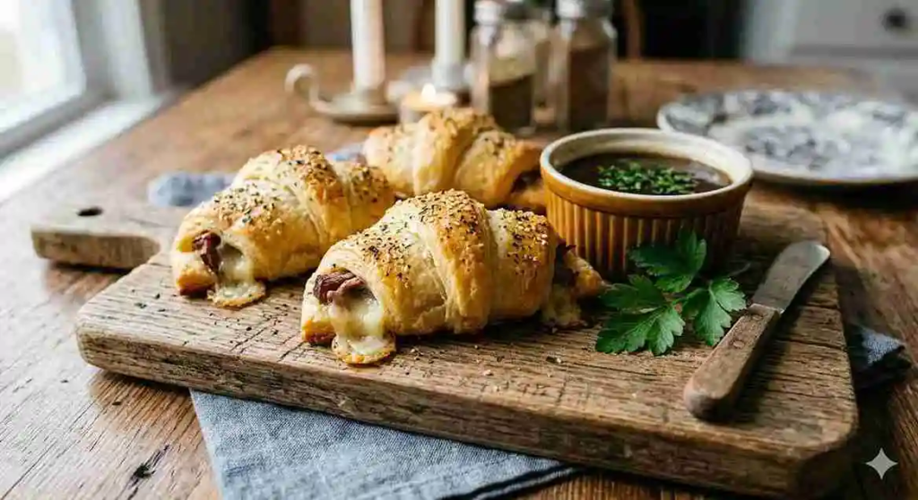 I didn’t want to spend hours in the kitchen, so I made this recipe for the first time on a chilly evening when everyone was needing something substantial. The house was immediately filled with the comforting scent of melting cheese, flavorful roast beef, and buttery crescent dough baking. It was sheer joy to see everyone smile after taking their first bite of the golden crescents dipped in warm au jus.