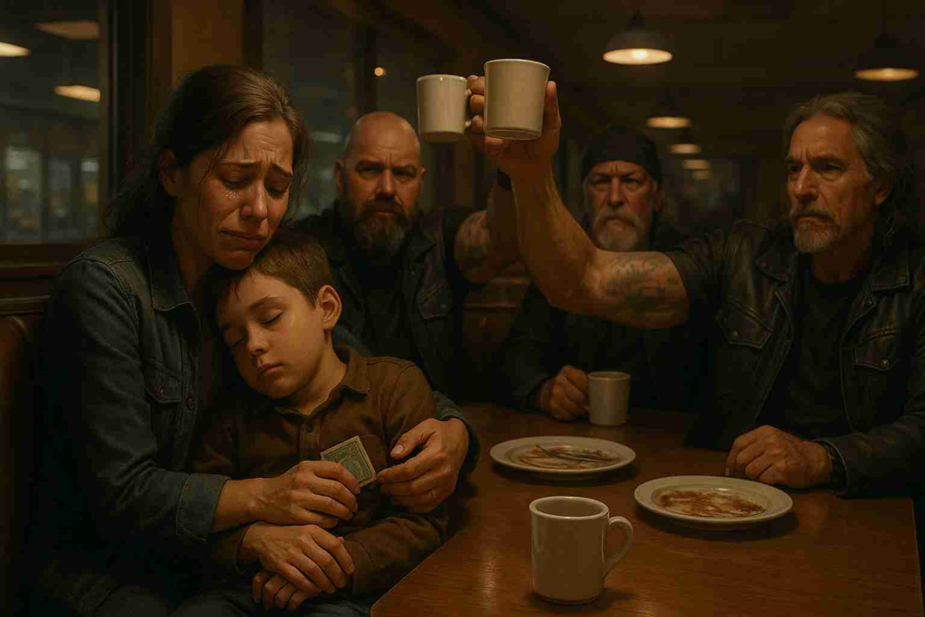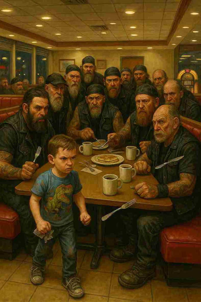 Big Mike got up and the rest of us got up with him. Fifteen bikers between the abuser and his victims forming a wall of leather. The diner had become quiet, all the eyes on the scene.
