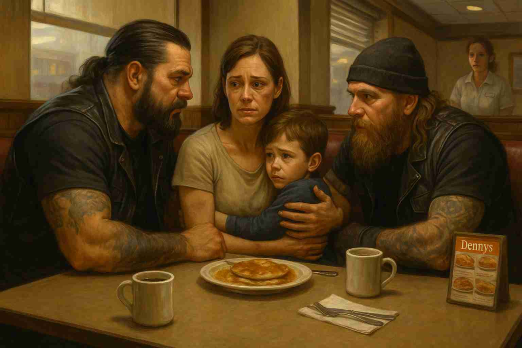 It began as any other night at a roadside Denny’s. It was the type of establishment such as truckers, night owls and our crew of fifteen bikers in leather vests would pull in after a long ride to get some hot coffee and inexpensive pancakes. There was a buzz of low conversation, clink of knives and forks and the odor of bacon. There was nothing with that evening, that promised to make it memorable.
