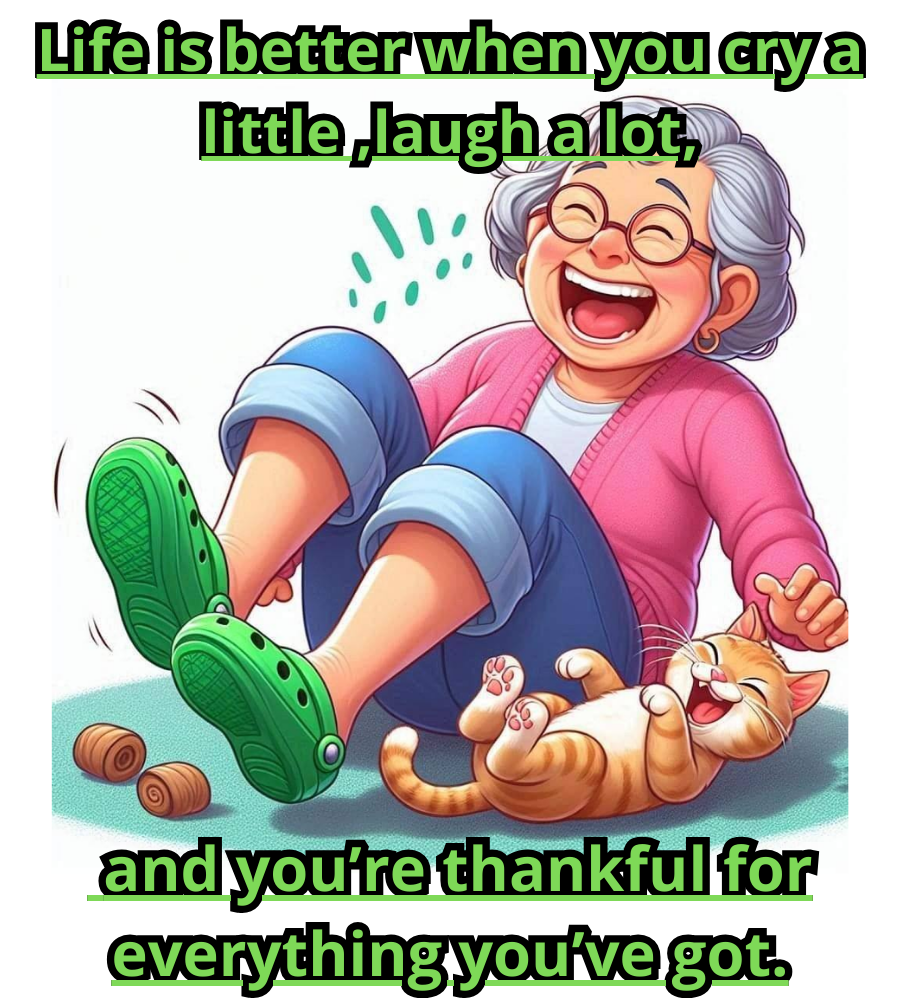 The fun of laughter is in laughing at yourself. Age is just a number and happiness has nothing to do with age. So let’s enjoy life. Stay positive and enjoy life no matter how tired we are. A good laugh makes every day brighter and more enjoyable. Growing old is a part of life but with humor it becomes a wonderful journey.