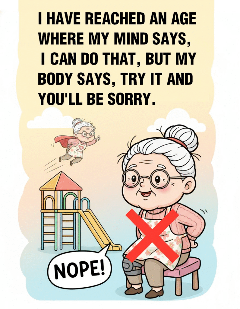 The fun of laughter is in laughing at yourself. Age is just a number and happiness has nothing to do with age. So let’s enjoy life. Stay positive and enjoy life no matter how tired we are. A good laugh makes every day brighter and more enjoyable. Growing old is a part of life but with humor it becomes a wonderful journey.