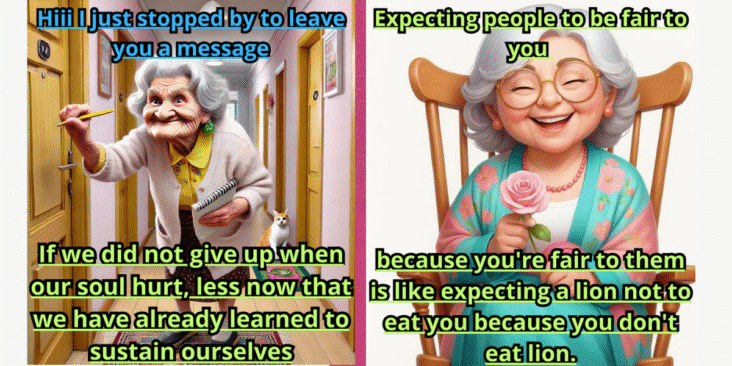 In these cartoons, elderly characters are seen doing some light mischief with wisdom. Sometimes someone smiles after advice and sometimes they laugh at something. This style shows that wisdom can also be accompanied by cheerfulness.